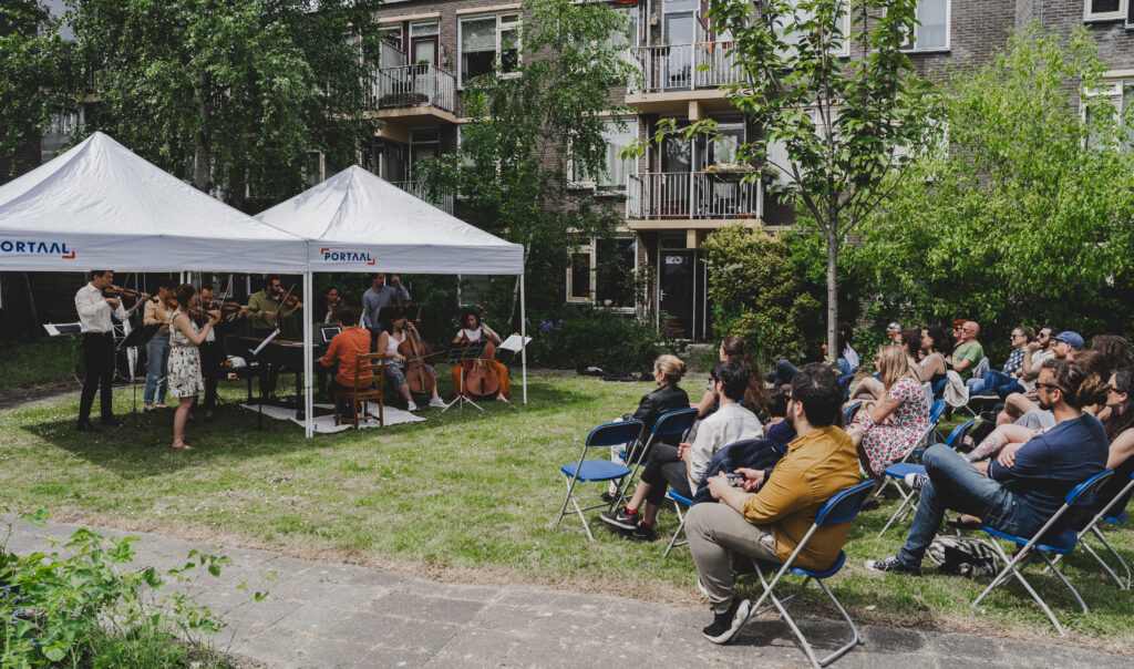 Het concert bood de buurt de gelegenheid om samen te komen en werd georganiseerd in samenwerking met Portaal en DeTussenvoorziening. We waren blij barokmuziek te kunnen spelen in een vriendelijke en open omgeving en zo een breed publiek te bereiken.